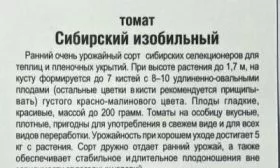 Название «Сибирский изобильный» точно отражает его суть. Приставка «сибирский» указывает на адаптированность к стрессовым факторам: перепадам суточных температур, прохладным ночам и недостаточной сумме активных температур. Слово «изобильный» прямо отсылает к заявленной высокой урожайности, которая достигает 5-6 килограммов с одного растения.