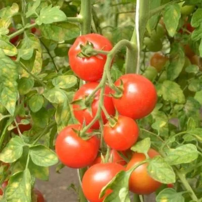В технической спелости плоды имеют светло-зеленый цвет без темного пятна у плодоножки. По мере созревания они равномерно наливаются насыщенным красным цветом. Кожица у зрелых томатов гладкая, достаточно плотная, что предохраняет их от растрескивания и обеспечивает хорошую транспортабельность. Высокая товарность, заявленная в характеристиках, подтверждается тем, что большинство плодов на кисти имеют практически одинаковый, привлекательный вид.