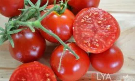 Плоды формируются в простых кистях, где обычно одновременно развивается от 5 до 7 завязей. Плодоножка имеет сочленение (утолщенный разделительный суставчик). Это важный нюанс для сбора: при полном созревании томат легко отделяется именно в этом месте, не повреждая кожицу и не оставляя плодоножки на самом помидоре, что удобно для последующей переработки или употребления.