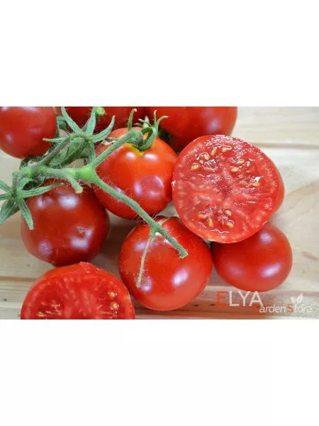 Плоды формируются в простых кистях, где обычно одновременно развивается от 5 до 7 завязей. Плодоножка имеет сочленение (утолщенный разделительный суставчик). Это важный нюанс для сбора: при полном созревании томат легко отделяется именно в этом месте, не повреждая кожицу и не оставляя плодоножки на самом помидоре, что удобно для последующей переработки или употребления.