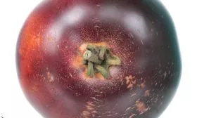 Антоцианы — это природные пигменты, которые у томатов часто проявляются под воздействием солнечного света в виде фиолетовых или синеватых оттенков. У данного сорта они концентрируются в области плечиков (зона вокруг плодоножки).