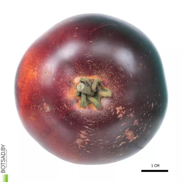 Главная особенность, которая сразу бросается в глаза, — это уникальная окраска плодов. Насыщенно-терракотово-красный основной цвет сочетается с небольшими антоциановыми плечиками. Антоцианы — это природные пигменты, которые придают кожице темно-фиолетовые, почти черные оттенки. Эта черта не только декоративна, но и полезна, так как антоцианы являются мощными антиоксидантами.