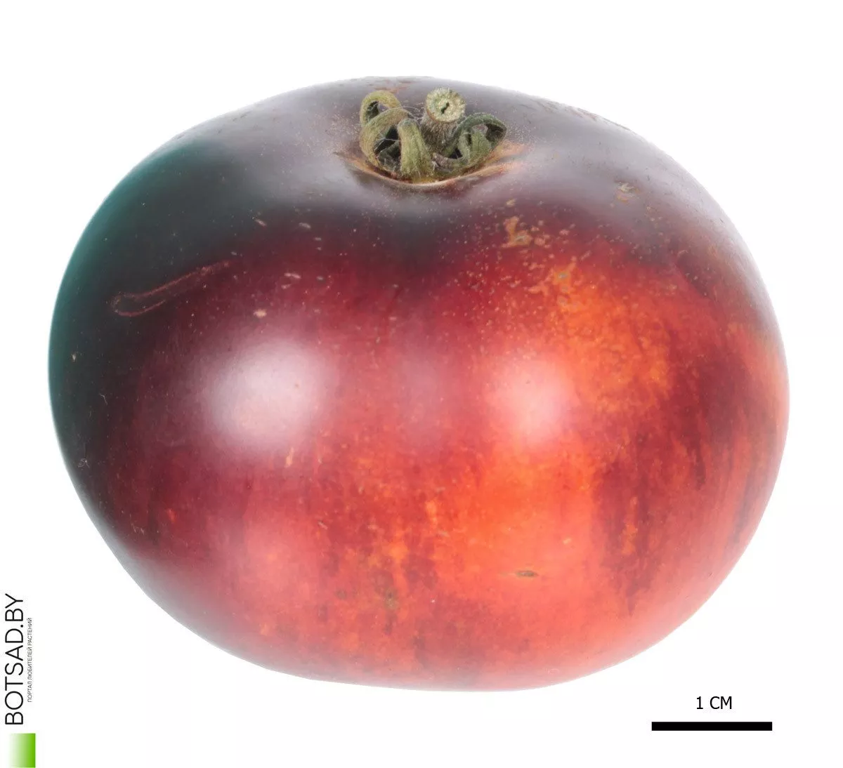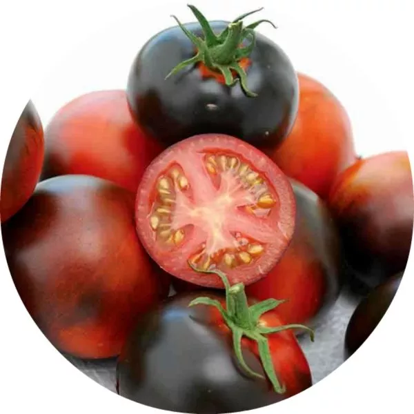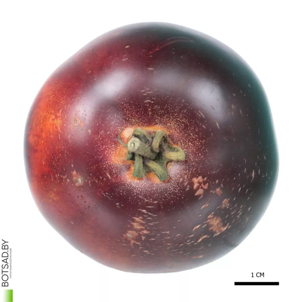 Антоцианы — это природные пигменты, которые у томатов часто проявляются под воздействием солнечного света в виде фиолетовых или синеватых оттенков. У данного сорта они концентрируются в области плечиков (зона вокруг плодоножки).