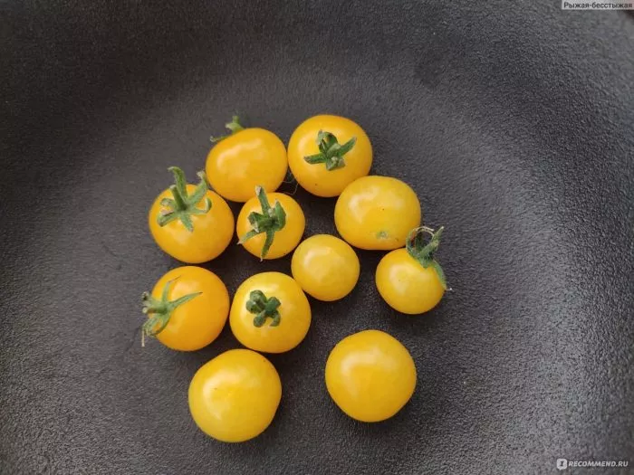 Этот сорт легко узнаваем и выгодно отличается от большинства красноплодных сортов. Его визитная карточка — насыщенный желтый цвет зрелых плодов, что прямо указано в характеристиках. Помидорки небольшие, массой около 25 граммов, имеют классическую округлую форму, напоминающую мелкие мячики.