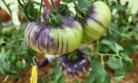 Антоцианы — это мощные природные антиоксиданты, которые у растений выполняют защитную функцию, повышая устойчивость к ультрафиолетовому излучению и некоторым болезням. Именно эти гены и дают сорту его фирменную чернильную окраску плечиков плодов и иногда — прожилки на листьях.