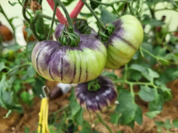 Это означает, что его генетические признаки стабильны и передаются потомству. Огородники могут самостоятельно заготавливать семена из созревших плодов, и в следующем сезоне получат растения с теми же характеристиками: индетерминантным типом роста, крупными плодами и уникальной двухцветной окраской.