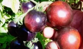 Главная отличительная черта этого гибрида — уникальная окраска, обусловленная высоким содержанием антоцианов. Эти природные пигменты, характерные для таких культур, как баклажан или черника, в томатах встречаются редко и придают плодам необычный внешний вид и повышенную полезность.