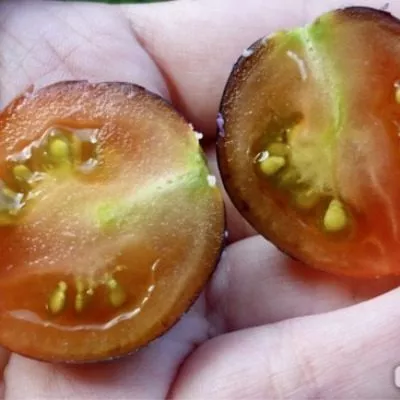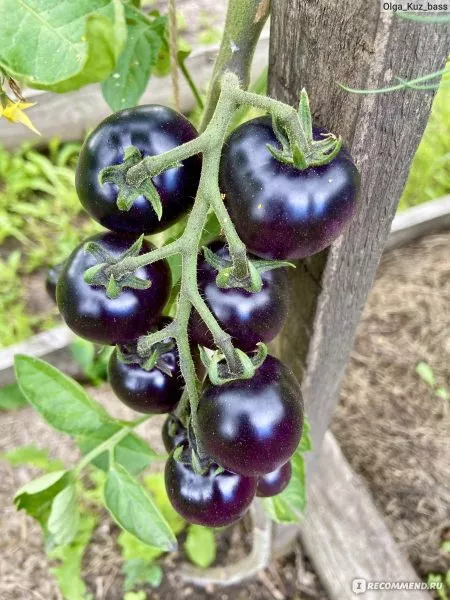 Главная отличительная черта этого гибрида — уникальная окраска, обусловленная высоким содержанием антоцианов. Эти природные пигменты, характерные для таких культур, как баклажан или черника, в томатах встречаются редко и придают плодам необычный внешний вид и повышенную полезность.