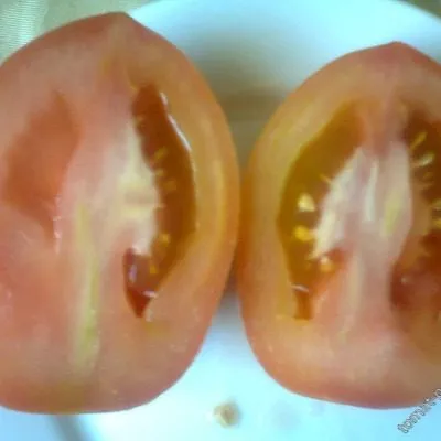 Кожица у плодов плотная, но не грубая, что предохраняет их от растрескивания при перепадах влажности и обеспечивает хорошую транспортабельность. Мякоть мясистая, многокамерная, с высоким содержанием сухих веществ, что характерно для большинства крупноплодных сортов сердцевидной формы.