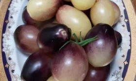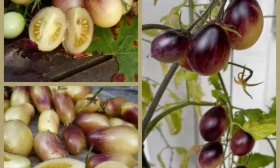 Внешний вид зрелой кисти, усыпанной гроздьями желтых плодов с фиолетовыми «шапочками», обладает высокой декоративной ценностью и может служить украшением как теплицы, так и огорода.