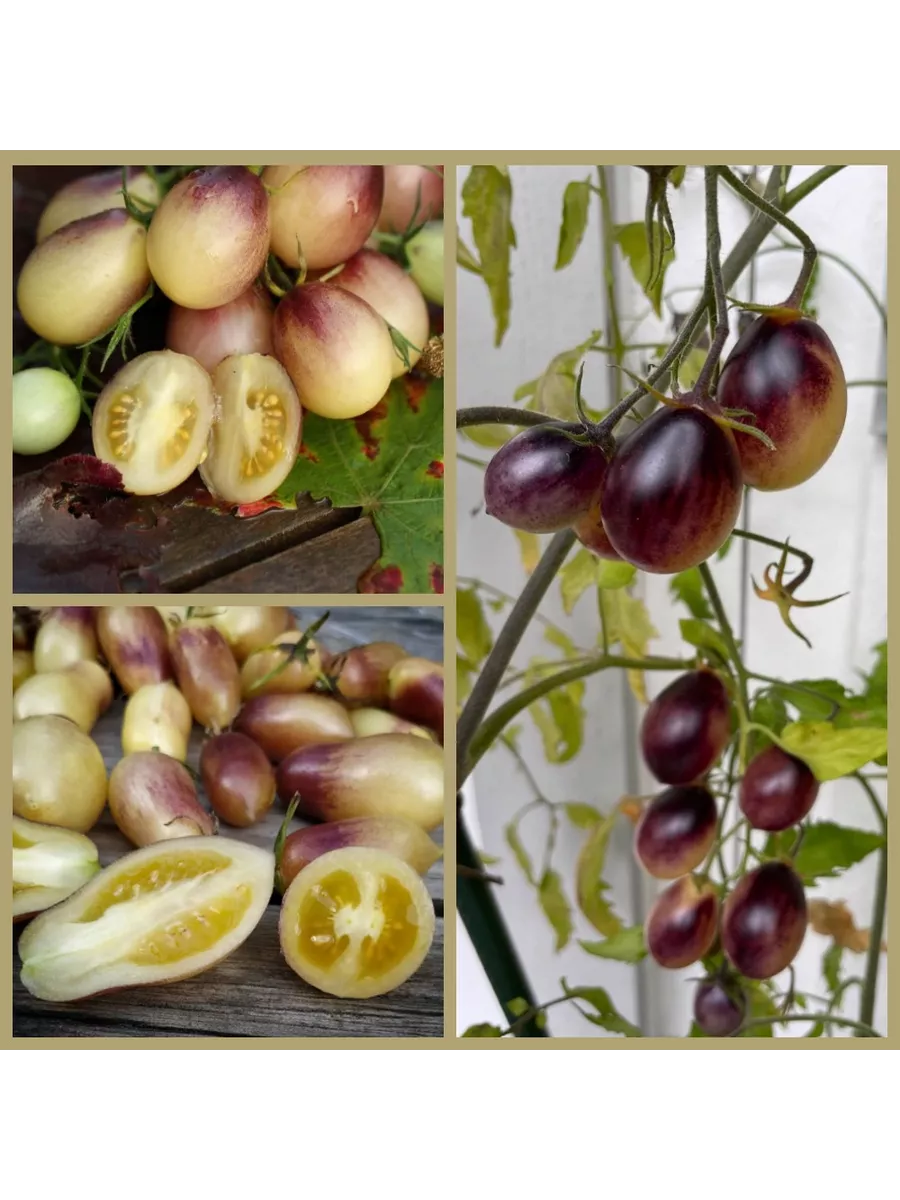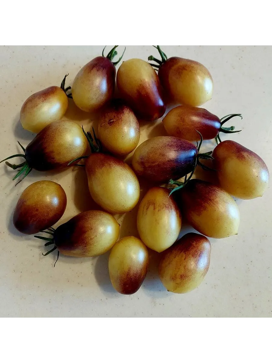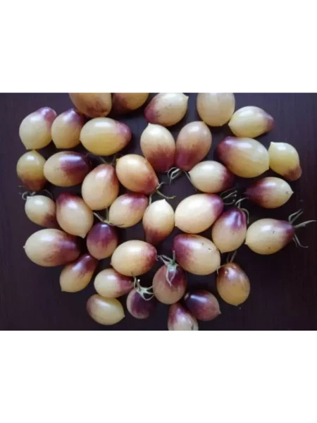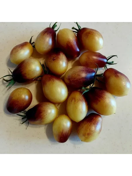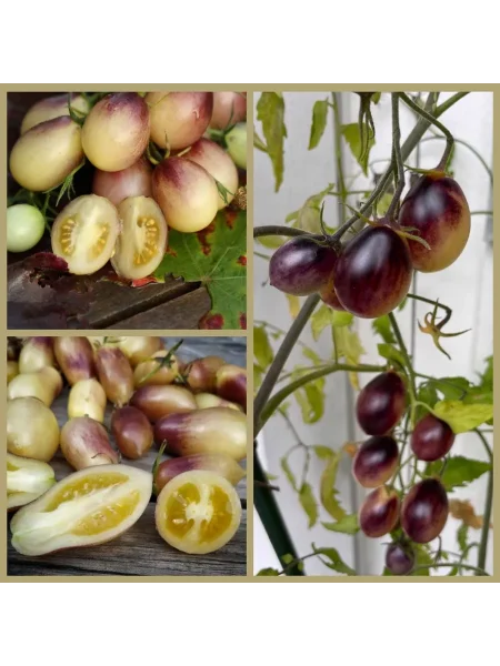 Ключевой целью при создании этого томата было получение растения, сочетающего визуальную привлекательность с кулинарной универсальностью. Его визитная карточка — контрастная окраска зрелых плодов: желтый основной фон с фиолетовым пятном антоциана на плечиках. Подобное сочетание, обусловленное накоплением растительных пигментов, встречается не так часто, особенно среди сортов, чьи плоды оптимально подходят для вяления и сушки.