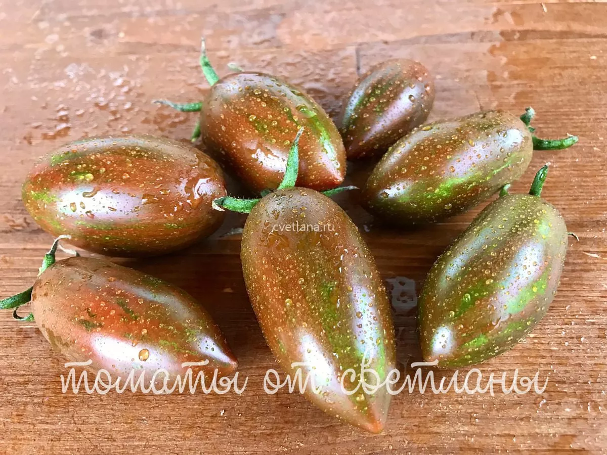 Главной «визитной карточкой» сорта, безусловно, является окраска зрелых плодов — коричневая с зелеными полосками. Важно понимать, что этот декоративный эффект проявляется в полной мере только при биологическом созревании на кусте. Снятые бурыми (в технической спелости) томаты могут не набрать характерный контрастный рисунок.