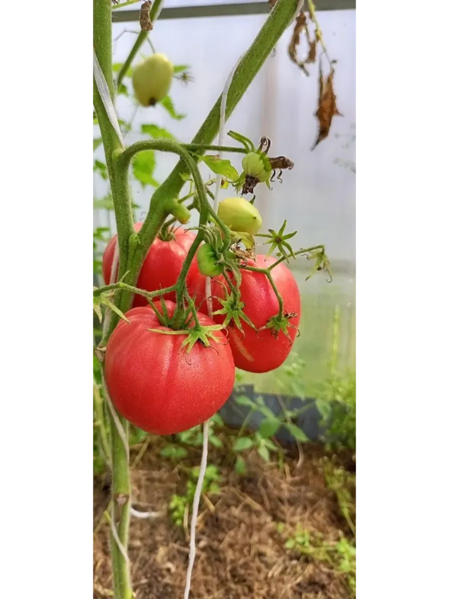 На нижних, первых кистях, где растение имеет максимальный ресурс, могут созревать гиганты до 400-500 граммов. Выше по стеблю томаты будут мельче, в диапазоне 150-250 граммов. Эта градация по размеру — норма, а не признак проблем с агротехникой.