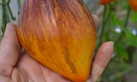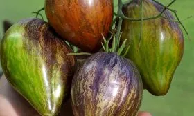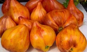 Сердцевидно-удлиненная форма с носиком и пестрая окраска делают эти томаты также прекрасным элементом для украшения блюд и фуршетных нарезок, где важен не только вкус, но и эстетика.