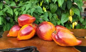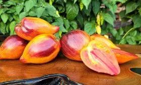 | Исключительная декоративность и сложный сладкий вкус плодов. | Среднеспелый срок созревания. В регионах с коротким летом большая часть урожая может не успеть вызреть на кусту. | В условиях Средней полосы, Урала, Сибири предпочтительно выращивание в теплице. Необходимо быть готовым к сбору бланжевых (бурозрелых) плодов с последующим дозариванием в помещении. |