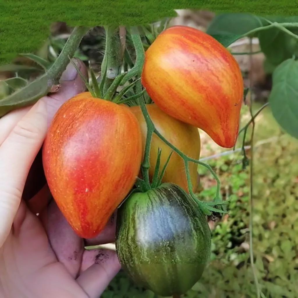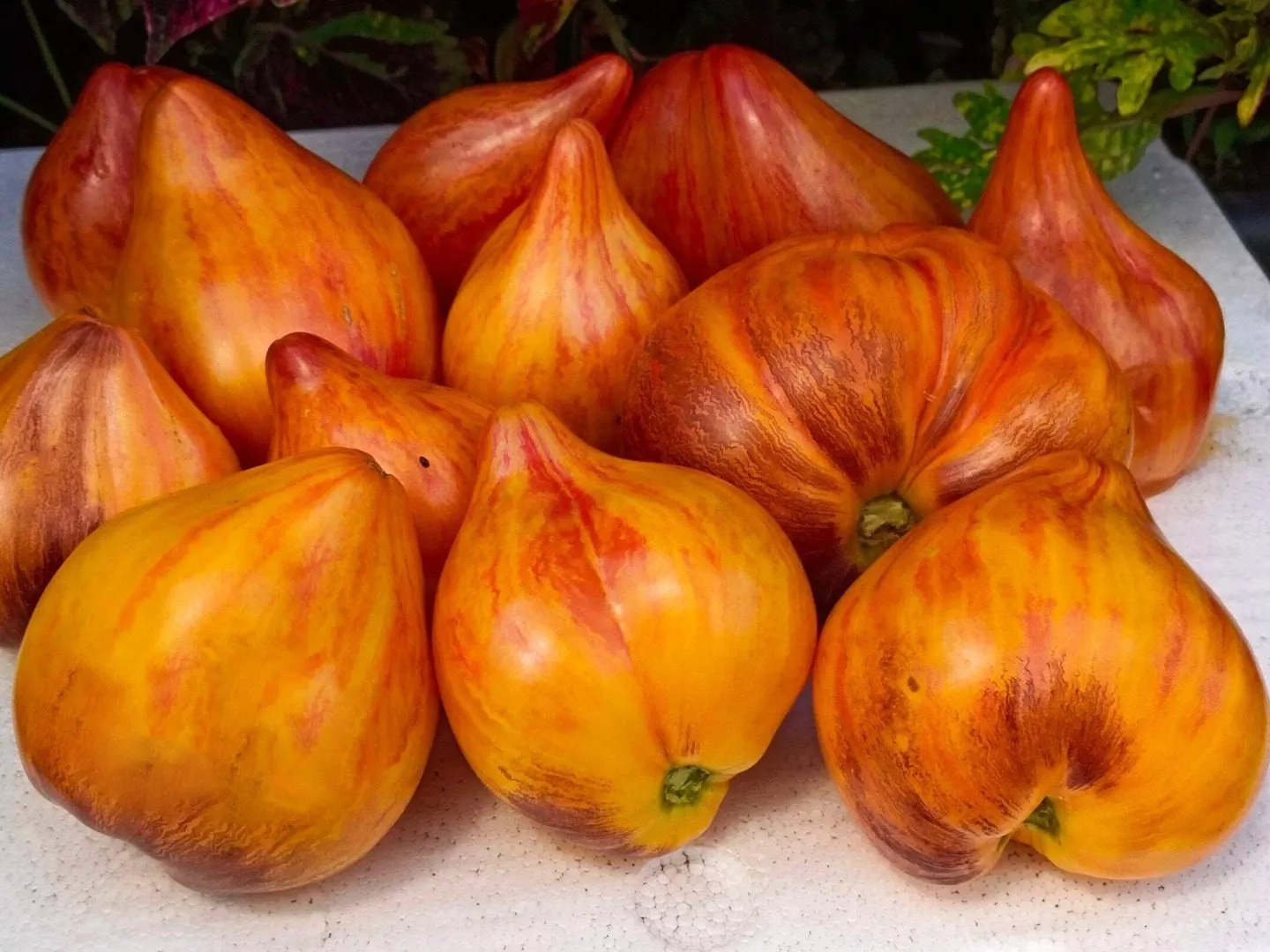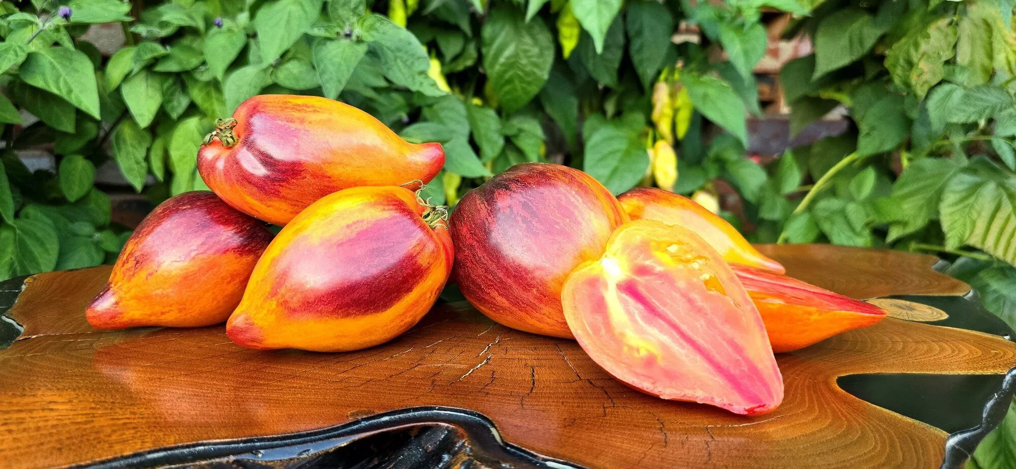 Сердцевидно-удлиненная форма с носиком и пестрая окраска делают эти томаты также прекрасным элементом для украшения блюд и фуршетных нарезок, где важен не только вкус, но и эстетика.