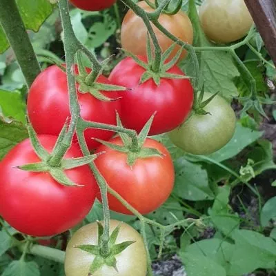 Плодоношение происходит на сложных (разветвленных) кистях, где томаты собраны плотными гроздьями. Это создает эффектный, обильный вид и облегчает сбор урожая.
