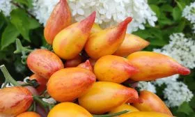 Плоды формируются в простых или промежуточных кистях. Небольшая масса плодов, 50-60 граммов, в сочетании с их количеством на кисти создает эффектный, обильный вид. Созревание в кисти часто происходит последовательно, что продлевает период декоративности и сбора урожая.