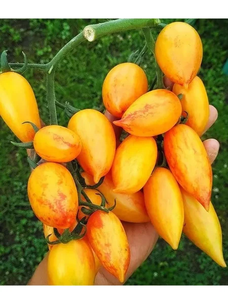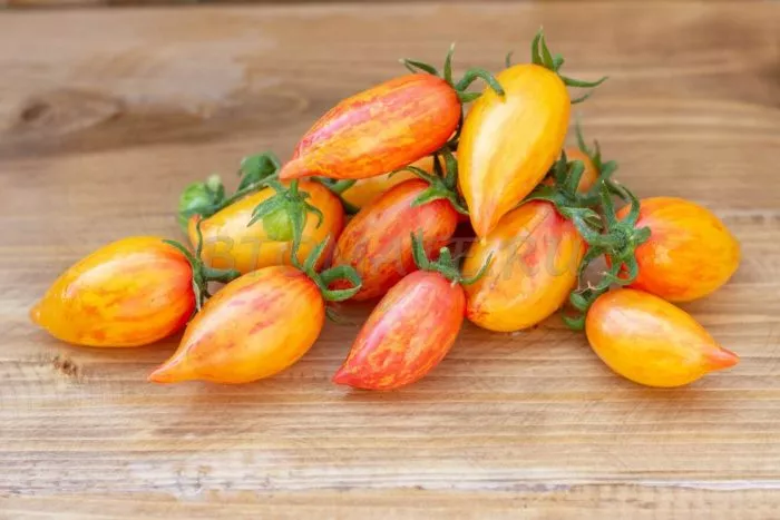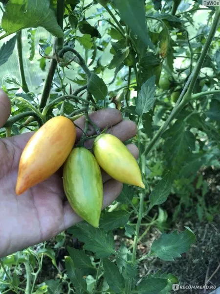 Плоды имеют правильную, вытянутую сливовидную форму с хорошо выраженным заостренным кончиком, так называемым «носиком». Такая перцевидная форма обеспечивает плотную, мясистую консистенцию с минимальным количеством семенных камер и сока. Благодаря этому плоды отличаются высокой транспортабельностью и отличной лежкостью, что нечасто встречается у раннеспелых сортов.