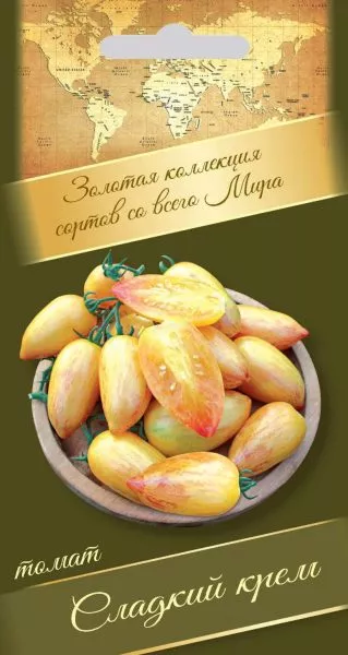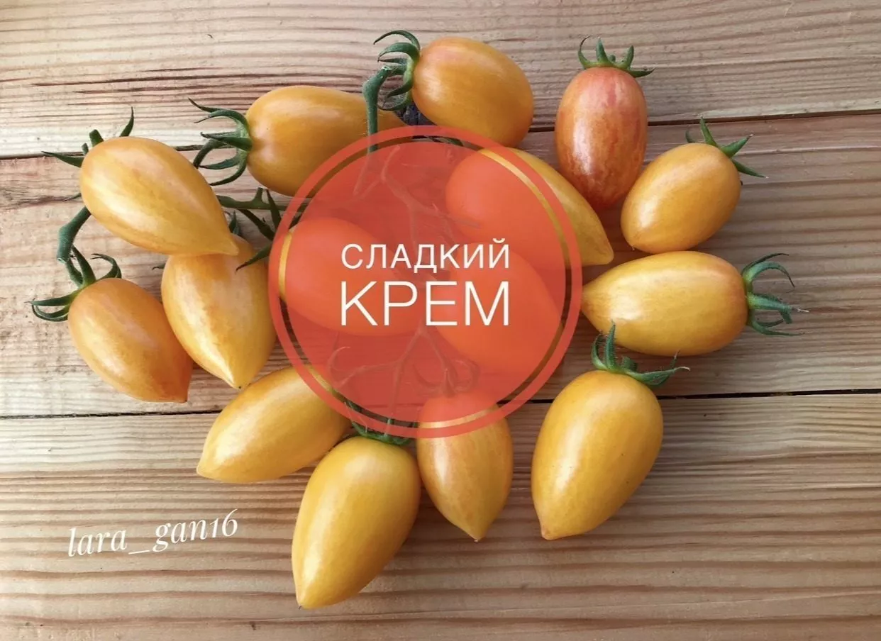 Появление сорта Сладкий крем соответствует устойчивому спросу на томаты с нестандартной окраской и формой плодов. Его уникальная палитра «золотисто-жёлтый с красными и оранжевыми полосами» и заострённая сливовидная форма являются визитной карточкой, выделяющей его среди классических красноплодных сортов. Такие томаты часто называют «биколорами» или «полосатыми», и их популярность в любительском овощеводстве постоянно растёт.