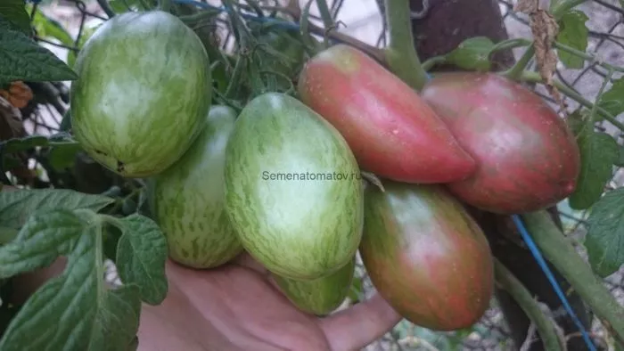 В технической спелости плоды светло-зеленые, без характерного для многих сортов темного пятна у плодоножки. Полностью созревшие томаты приобретают яркий, насыщенный красный цвет.