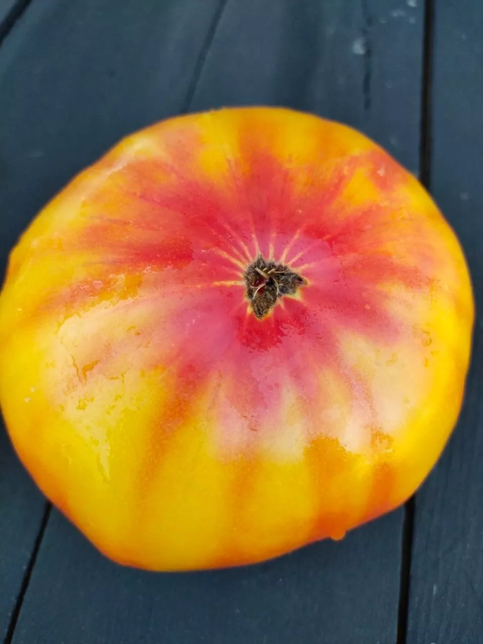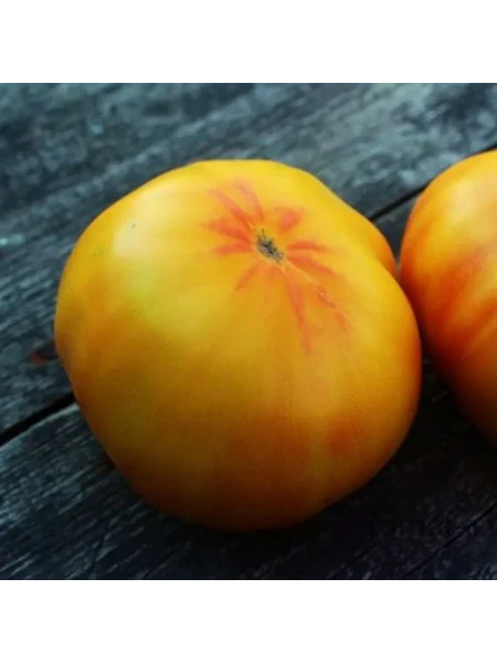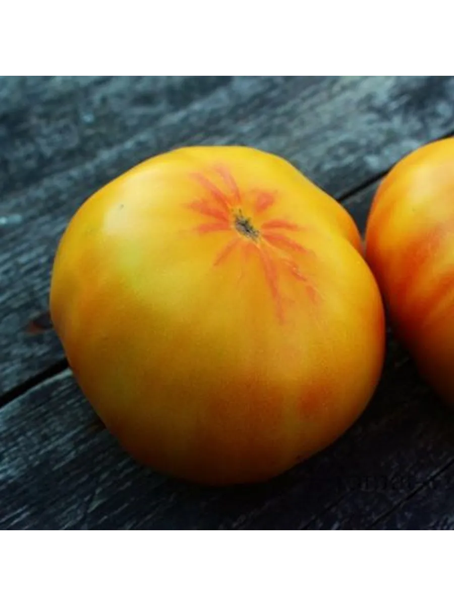Окрас в технической спелости — зеленый, без темного пятна у плодоножки. При полном созревании на кусте проявляется уникальный двухцветный окрас: основной фон становится насыщенно-оранжевым, а на плечиках (верхней части плода) появляются яркие красные размытые румяна. Интенсивность этого румянца напрямую зависит от количества полученного солнечного света.
