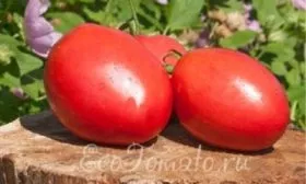 Плоды — визитная карточка этого сорта. Их невозможно спутать с другими благодаря выразительной грушевидной форме со слабой ребристостью. В стадии полной зрелости они приобретают насыщенный малиновый цвет, а не классический красный.