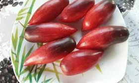 Универсальность назначения плодов — одна из сильных сторон сорта. Удлиненная сливовидная форма с острым носиком, плотная кожица и средняя масса 50-80 граммов делают их идеальными для цельноплодного консервирования, маринования и вяления. Сладкий, сбалансированный вкус без водянистости и лишней приторности высоко ценится при употреблении в свежем виде и для приготовления густых соков или паст.