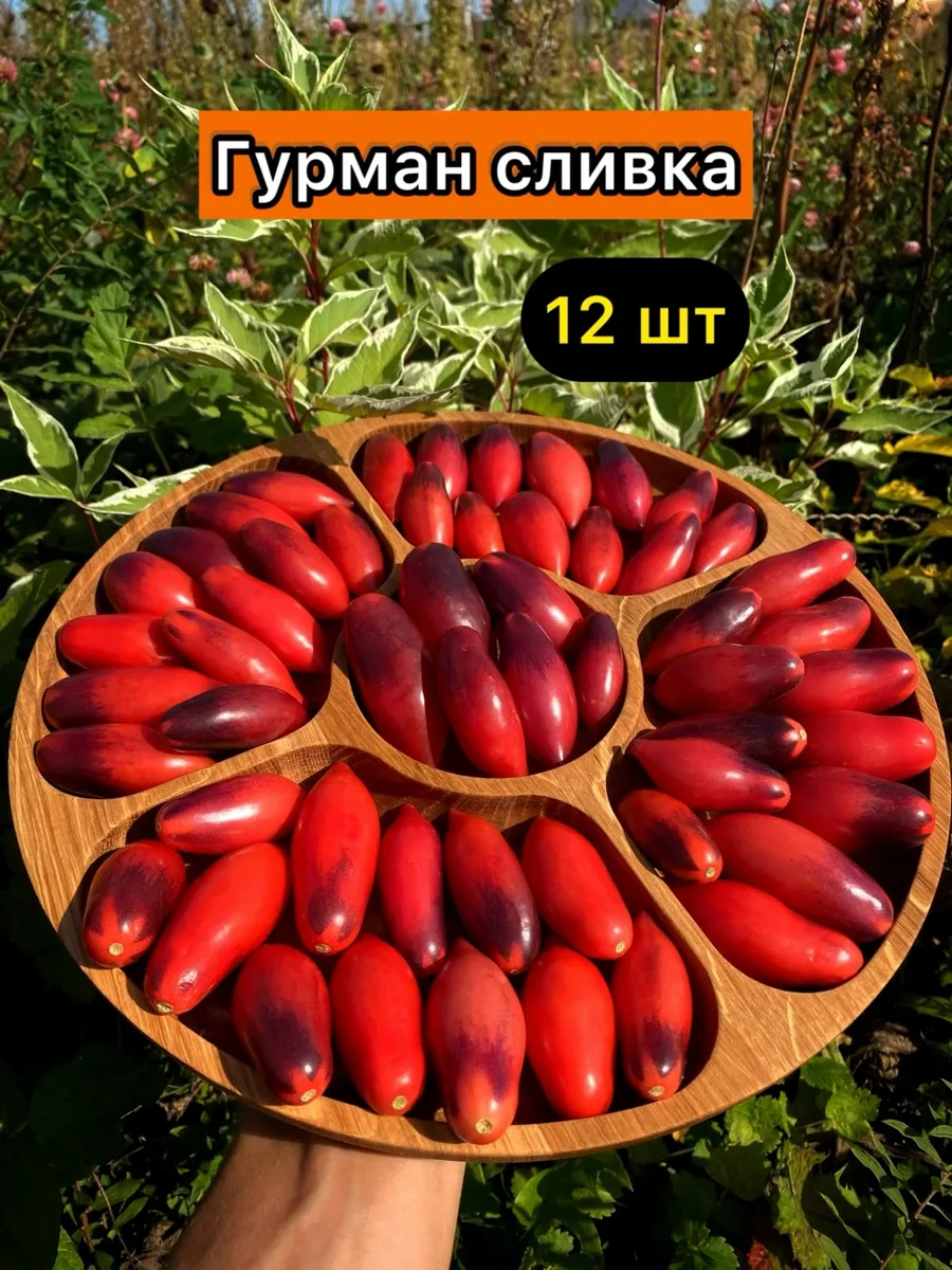Плоды «Сливки Гурман» полностью соответствуют своему названию. Их форма — это удлиненная сливка с ярко выраженным острым носиком на вершине. Такая вытянутая форма и компактный размер (массой 50-80 г) делают их идеальными для цельноплодного консервирования, так как они плотно укладываются в банку и сохраняют свою структуру.