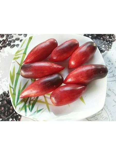 Универсальность назначения плодов — одна из сильных сторон сорта. Удлиненная сливовидная форма с острым носиком, плотная кожица и средняя масса 50-80 граммов делают их идеальными для цельноплодного консервирования, маринования и вяления. Сладкий, сбалансированный вкус без водянистости и лишней приторности высоко ценится при употреблении в свежем виде и для приготовления густых соков или паст.