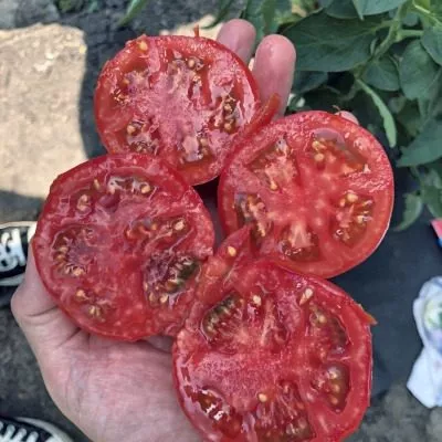 Мякоть у зрелых плодов плотная, мясистая (многокамерная), с минимальным содержанием свободной жидкости и семян. Такая структура гарантирует, что томат не растечется при нарезке и сохранит форму в заготовках. Вкусовой профиль характеризуется как сбалансированный, гармоничный – выраженная классическая кислинка удачно дополняется достаточной сахаристостью.