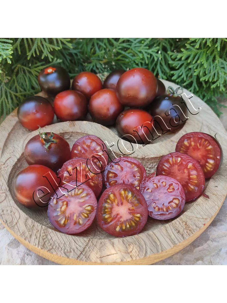 Именно поэтому равномерный, глубокий фиолетовый «загар» появляется только на тех боках плода, которые обращены к солнцу. Плоды, созревающие внутри куста или в условиях недостаточной освещенности, часто остаются преимущественно бордово-красными с отдельными фиолетовыми фрагментами. Хаотичные мазки и «брызги» бордового цвета на общем фиолетовом фоне делают каждый томат уникальным.