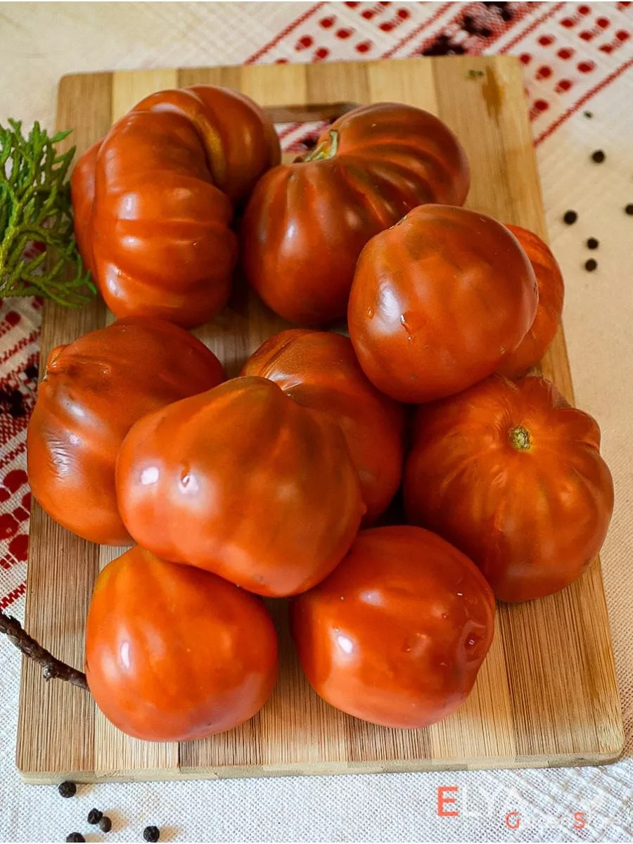 Сорт создан для любителей нестандартной коллекции и ценителей насыщенного вкуса. Его ключевая особенность — сочетание необычной перцевидно-грушевидной формы с продольными ребрышками и глубокого бордово-коричневого цвета в биологической спелости. Такой плод сложно перепутать с каким-либо другим.