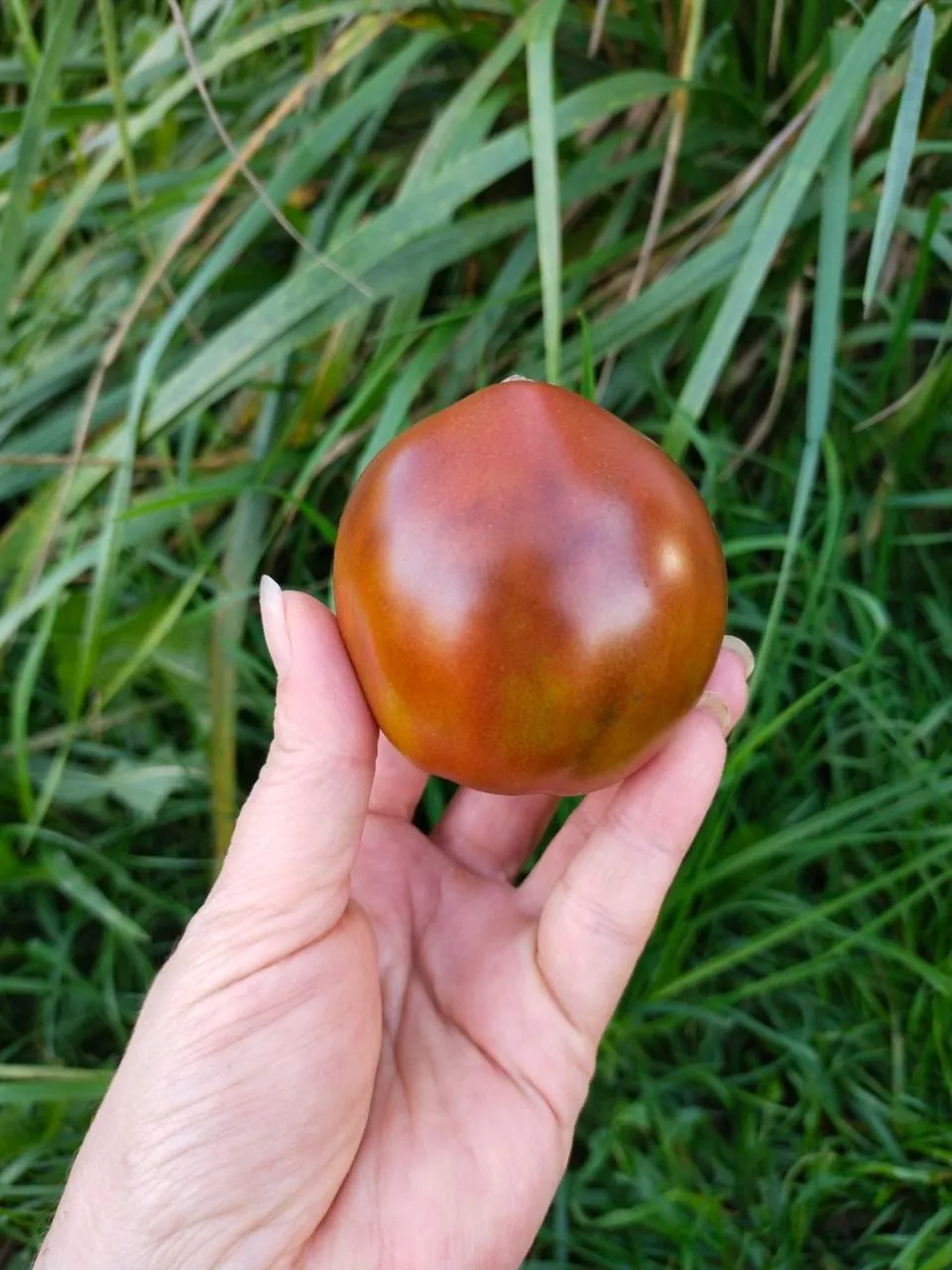 Окраска в технической спелости — зеленая с темно-зеленым пятном у плодоножки. При полном созревании цвет меняется на глубокий бордово-коричневый. Насыщенность оттенка напрямую зависит от освещения: плоды, созревающие под прямым солнцем, приобретают более темный, шоколадный или фиолетовый подтон, особенно на «плечиках». Томаты в глубине куста или в условиях недостаточной освещенности могут остаться более светлыми, с преобладанием бордового тона.