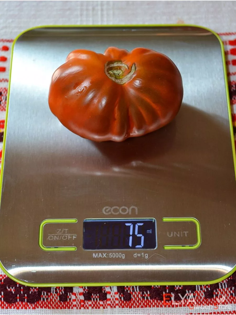 | Масса плода | 120-200 г | Плоды крупные, выровненные. Нижние кисти часто формируют более массивные томаты. |