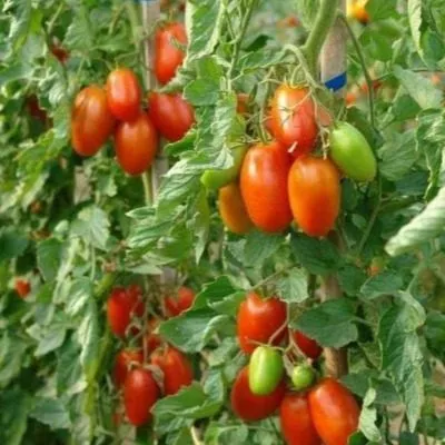 Цветочные кисти простого типа. Плоды в них завязываются дружно и располагаются достаточно часто. Форма томатов эллиптическая, часто описываемая как сливовидная или овальная. Плоды выровненные по размеру, что хорошо видно на созревающей кисти.