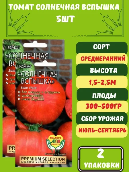 Ключевая особенность, которую важно понимать с самого начала, — Солнечная вспышка является именно сортом, а не гибридом F1. Это имеет прямое практическое значение: семена, собранные из плодов этого томата, будут повторять все сортовые признаки родительского растения. Огородник получает возможность самостоятельно обеспечивать себя посевным материалом, что особенно ценно для редкой и красивой разновидности.