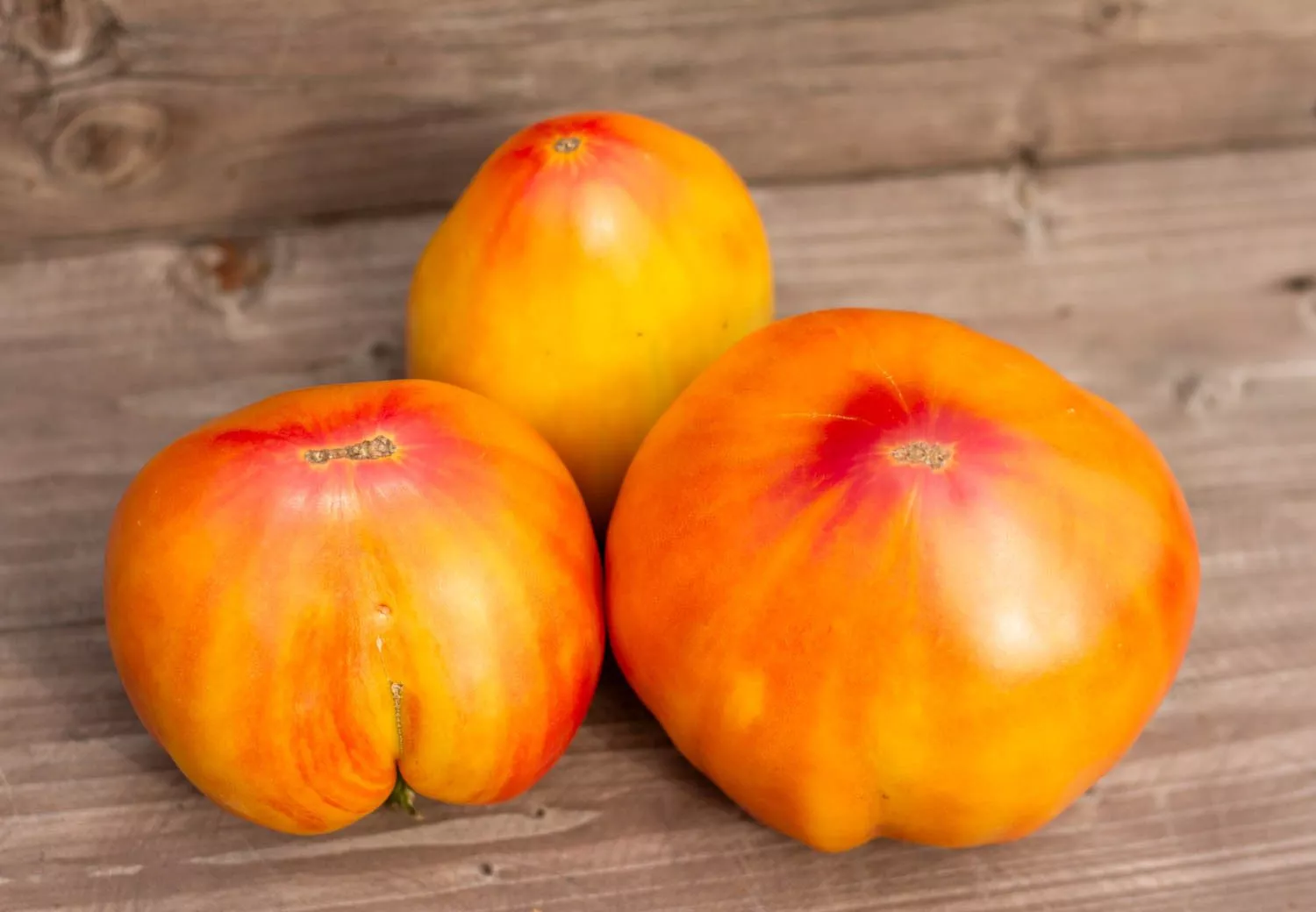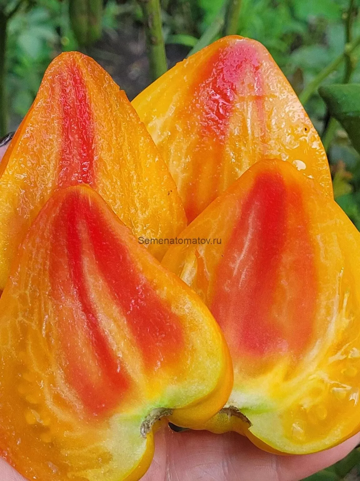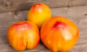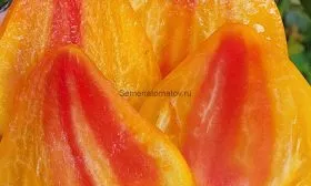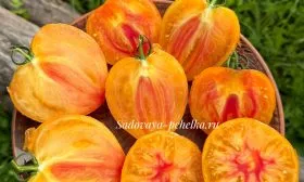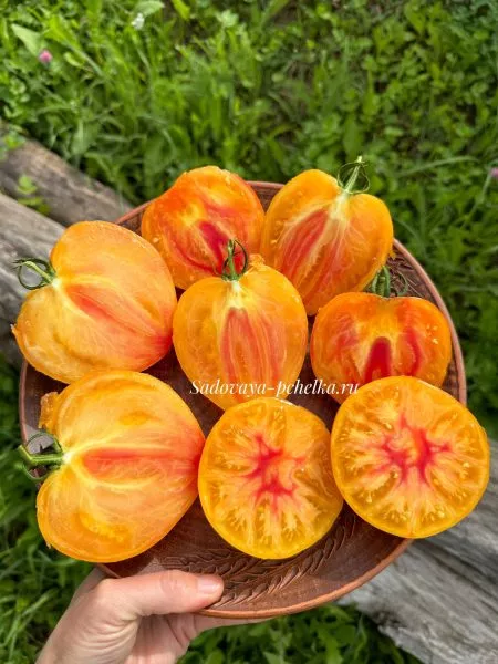 Полностью созревший томат обладает гармоничным сочетанием оранжевого и розового тонов. Эта игра цвета делает каждый плод уникальным и очень декоративным.