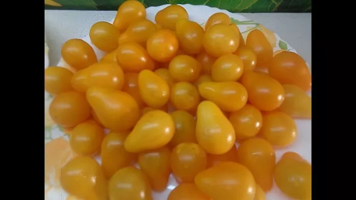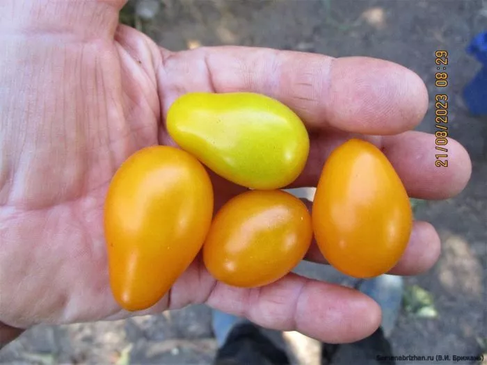 Главная отличительная черта сорта — его плоды. Они некрупные, массой до 20 граммов, имеют изящную овальную или сливовидную форму, часто с характерным небольшим носиком. В технической спелости они светло-зеленые, а при полном созревании приобретают равномерный, насыщенный ярко-желтый цвет без какого-либо зеленого пятна у плодоножки.