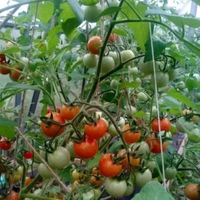 Плодоножка имеет сочленение, что облегчает сбор урожая, не повреждая сам плод. Плоды формируются и созревают в сложных кистях, по типу «грозди». На одном растении таких кистей закладывается множество, что создает эффект обильной усыпанности куста яркими помидорами.
