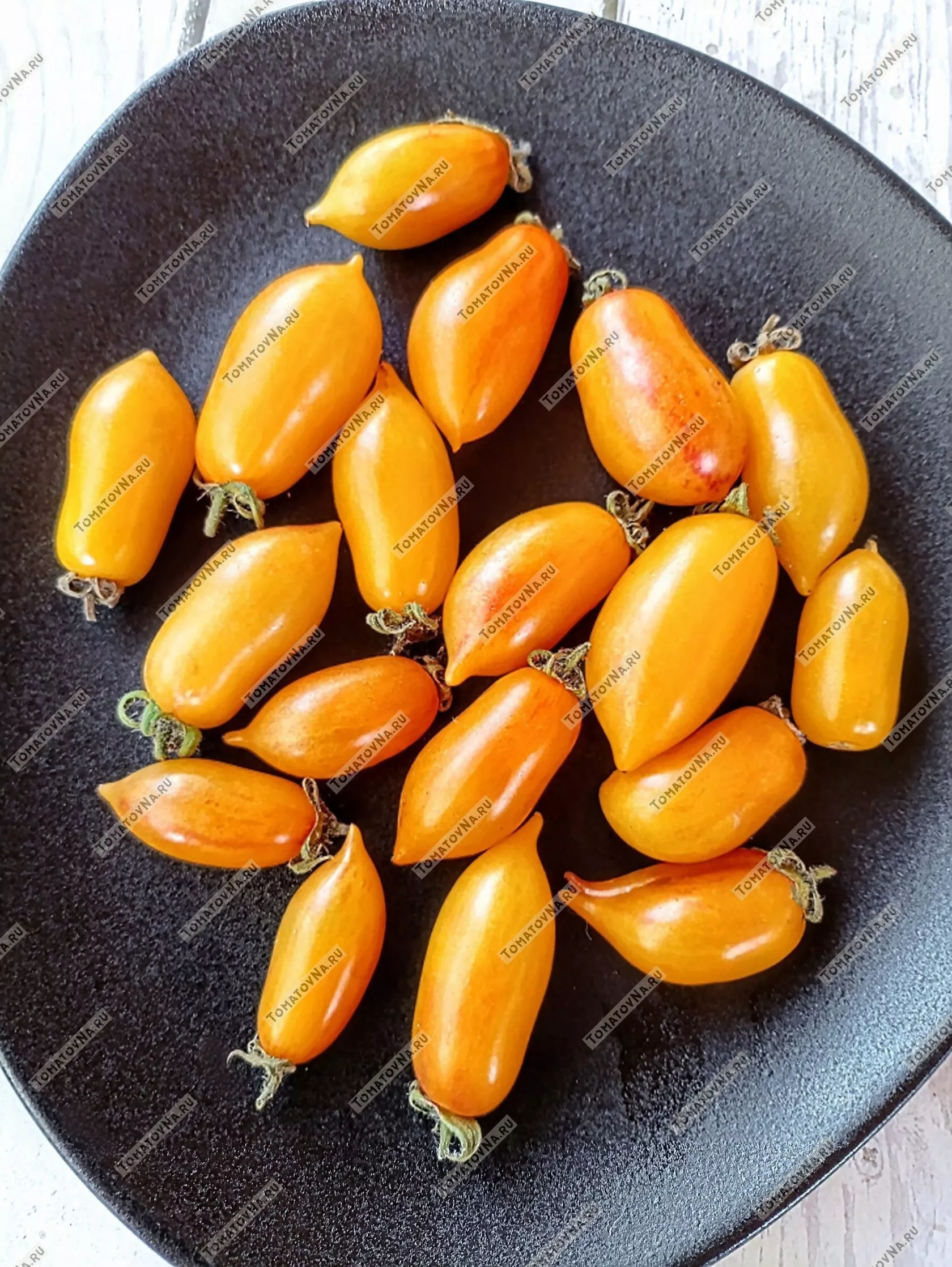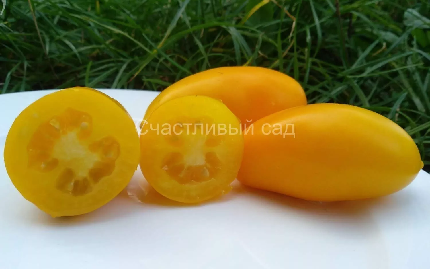 Окрас в фазе полной биологической спелости — равномерный солнечно-желтый или янтарный, без зеленого пятна у плодоножки. Мякоть плотная, мясистая, с небольшим количеством семян и двумя-тремя семенными камерами. Такая структура делает плоды идеальными для цельноплодного консервирования, маринования и вяления, так как они сохраняют форму и не развариваются.