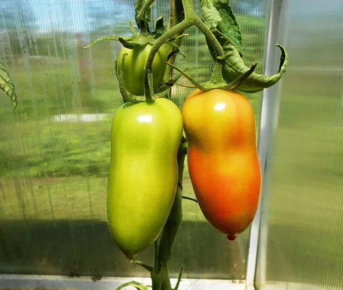 Плоды завязываются в кистях, по несколько штук в каждой. Форма — главная отличительная черта сорта — удлиненно-цилиндрическая с четко выраженным заостренным кончиком («носиком»). Кожица у зрелых томатов гладкая, плотная, но не жесткая, что обеспечивает им отличную транспортабельность и устойчивость к растрескиванию даже при перепадах влажности.