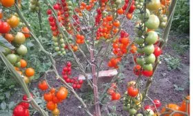Главная отличительная черта сорта — характер плодоношения. Плоды завязываются и созревают в длинных, разветвленных кистях (гроздьях), напоминающих виноградные. На одной такой кисти может одновременно наливаться и созревать до 30-40, а иногда и более, одинаковых по размеру помидорок. Это создает высокую нагрузку на побег, поэтому подвязывать нужно не только основной стебель, но и тяжелые плодовые кисти.