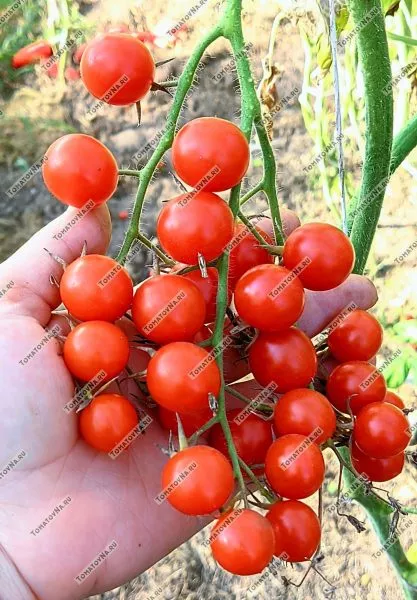 Плоды собраны в длинные, часто разветвленные кисти (плодовые ветви). На одной такой кисти может созревать по 20-30 и более одинаковых по размеру «шариков». Это создает эффектный декоративный вид и указывает на высокий потенциал урожайности.
