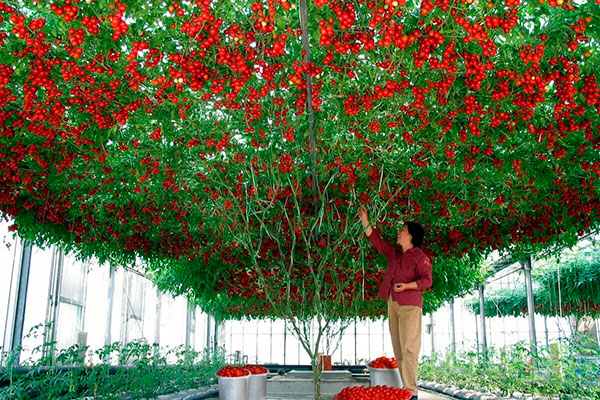 - до 10000 плодов или до 1500 кг с 1 растения, выращиваемого в отапливаемом укрытии круглогодично в виде помидорного дерева.