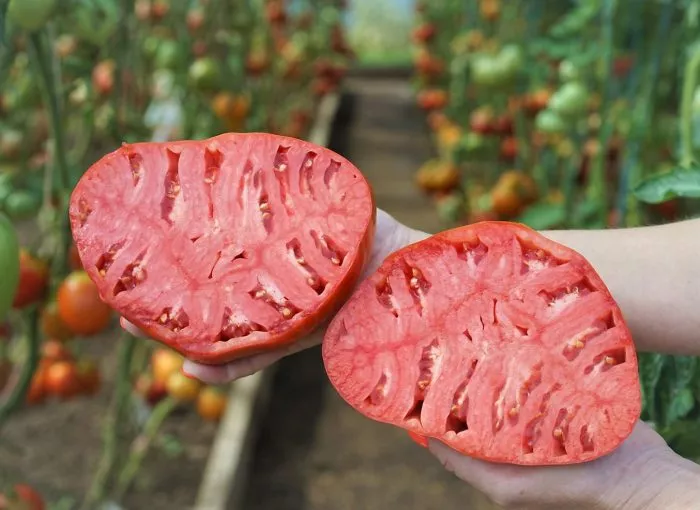 Такой высокорослый и крупноплодный тип томата предъявляет повышенные требования к питанию и поливу. Стабильное обеспечение влагой и элементами питания — залог того, что завязи достигнут заявленной массы от 500 до 1000 граммов и более. Колебания в уходе могут привести к сбросу цветков, измельчанию или растрескиванию плодов.