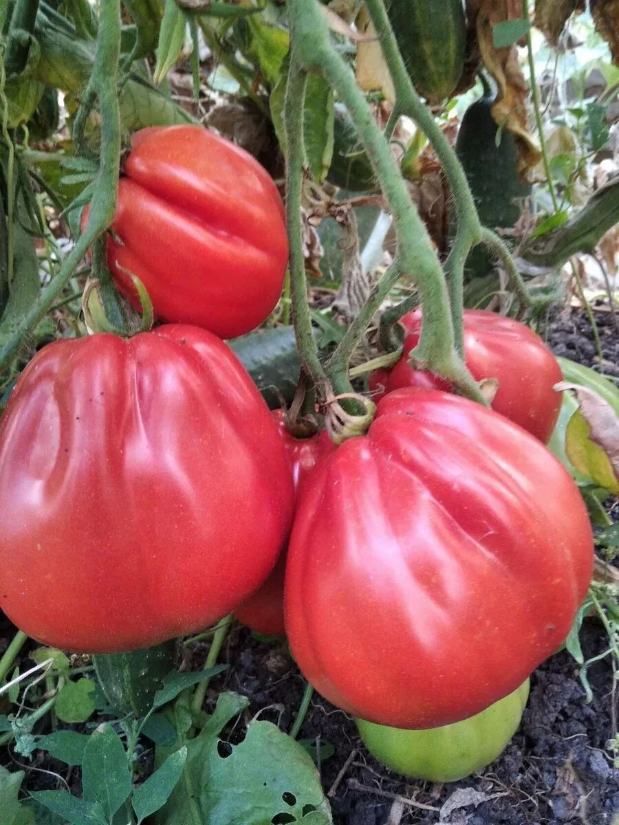 Плоды имеют классическую плоскоокруглую форму, часто с выраженной ребристостью в области плодоножки. В состоянии биологической зрелости они приобретают равномерную насыщенно-красную окраску. Главная отличительная черта — выдающаяся масса. Если стандартный вес томатов составляет 500-700 граммов, то первые завязи на нижних кистях регулярно демонстрируют рекордные показатели в 800-1200 граммов.