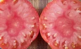 Вкусовой профиль этого сорта соответствует ожиданиям от классического крупноплодного томата. Мякоть обладает выраженной сахаристостью, что видно по ее зернистой, мясистой структуре на изломе. Сбалансированное содержание сахаров и кислот формирует насыщенный, гармоничный вкус без водянистости.
