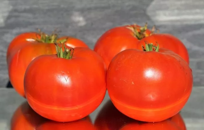 Плоды имеют классическую плоскоокруглую форму с выраженной, но не грубой ребристостью у плодоножки. В биологической спелости они приобретают равномерный, насыщенный красный цвет без зеленого пятна у основания.