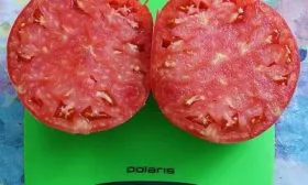 Мякоть зрелого плода насыщенно-красная, исключительно плотная и мясистая, с сахаристой, зернистой структурой на изломе. Семенных камер мало, семян немного. Прочная, но не грубая кожица надежно защищает крупные плоды от растрескивания, что является большим преимуществом для гибрида с такой массой.